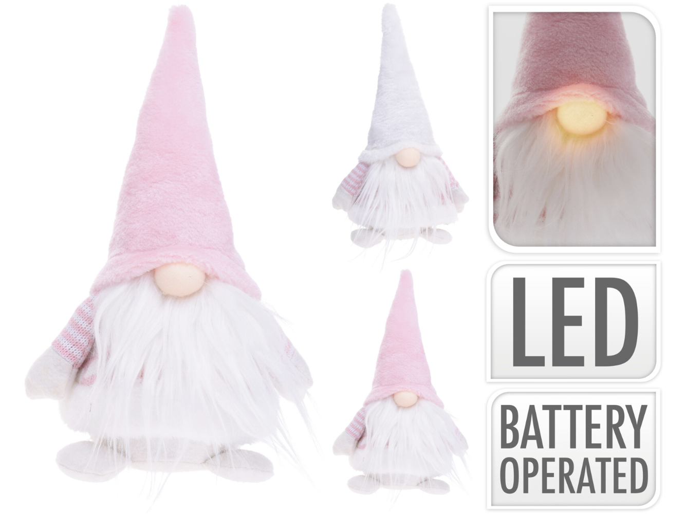 Deko Wackel-Wichtel / Zwerg m. LED Nase, 2-fach sortiert rosé-weiß