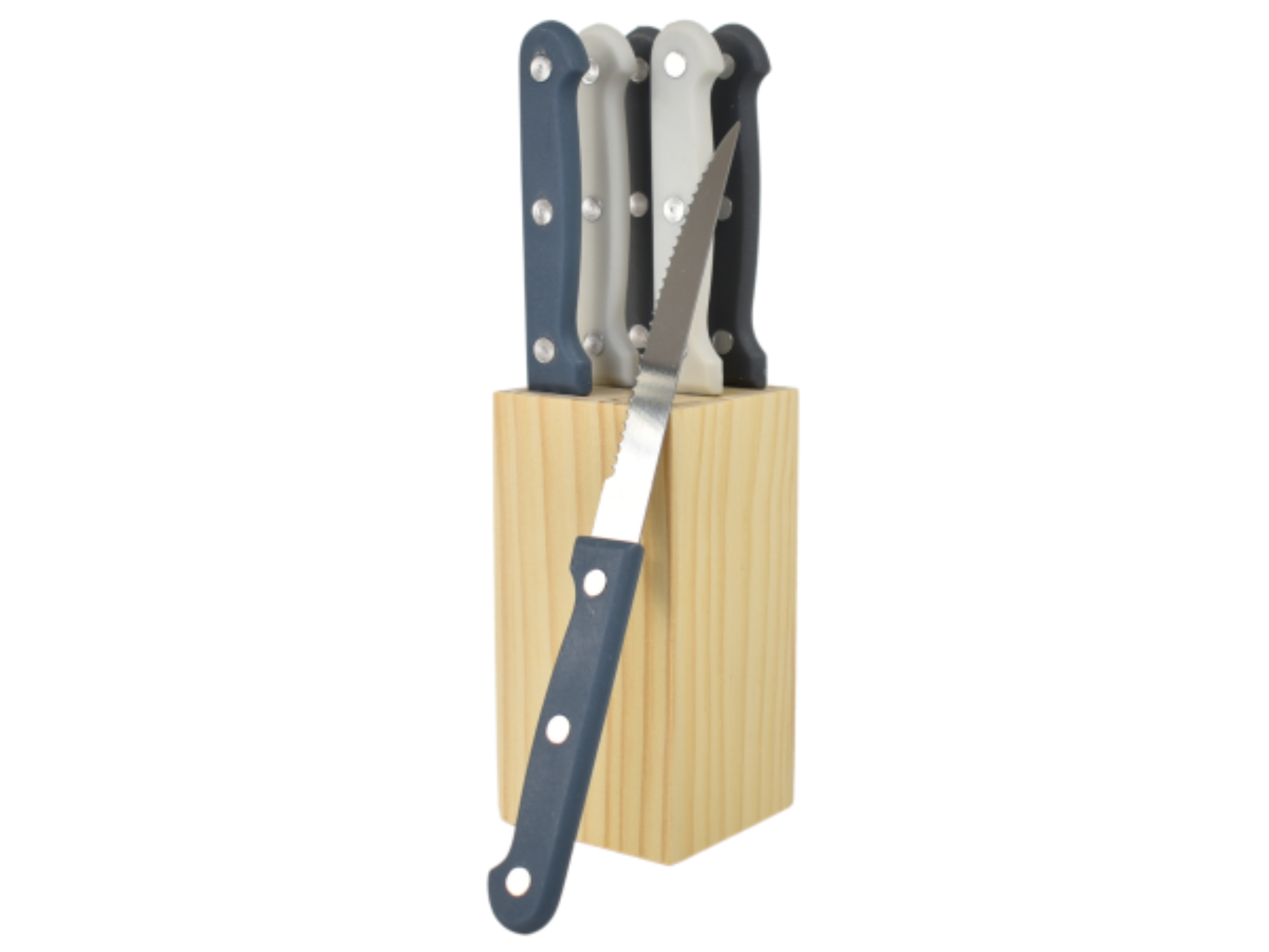 Steakmesser Set mit Holzblock, Küchenmesser, 6-tlg. + Block