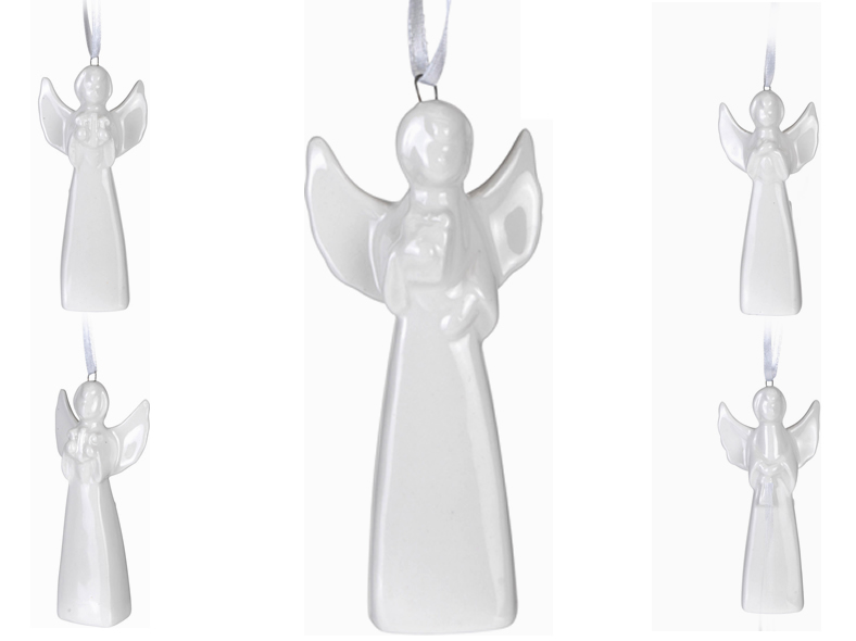Engel 10 cm groß zum Hängen, 4 fach sortiert, aus Porzellan