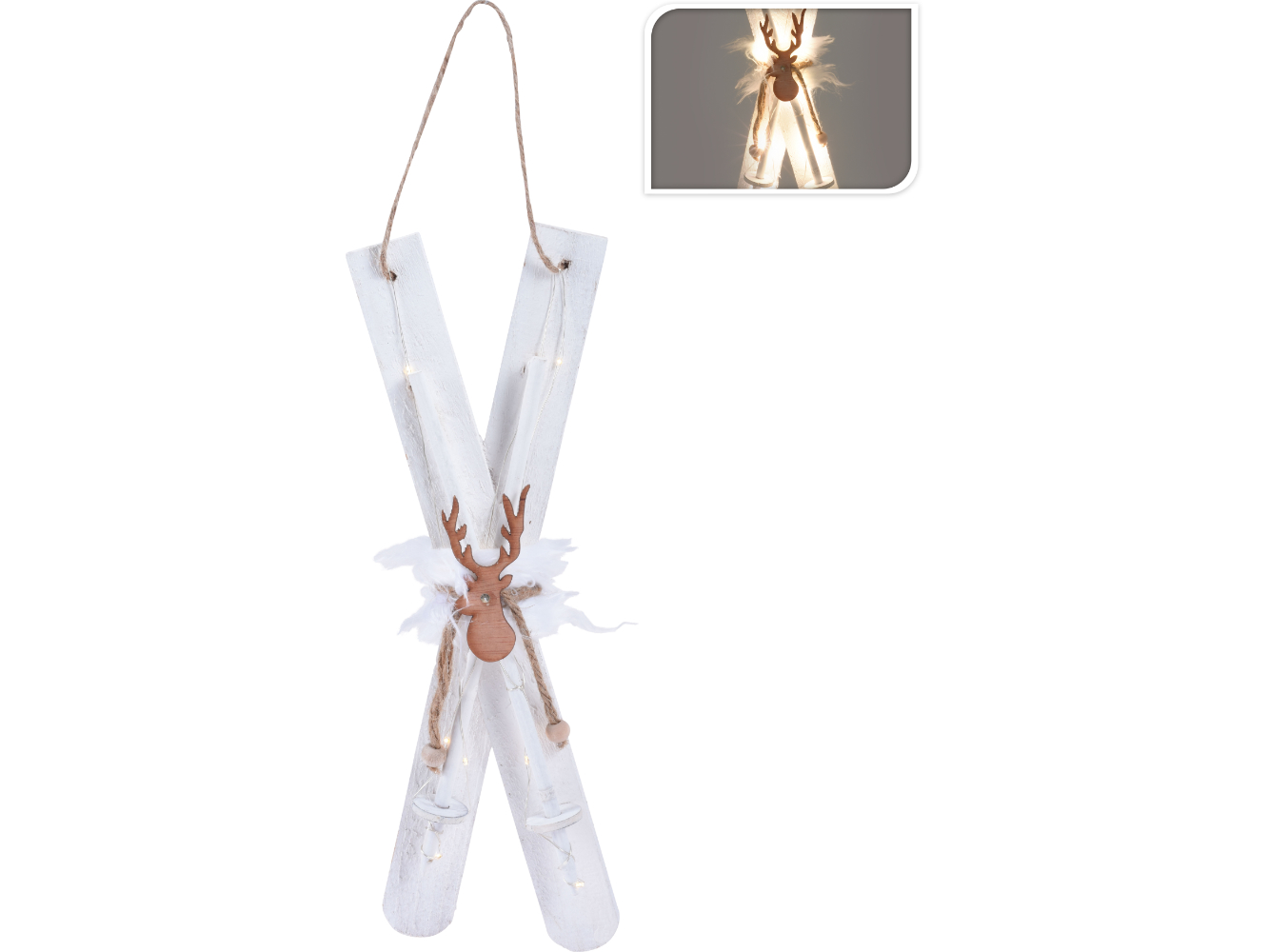 LED Deko SKI, Holz, warmweißes Licht, 13 LED Shabby Style weiß