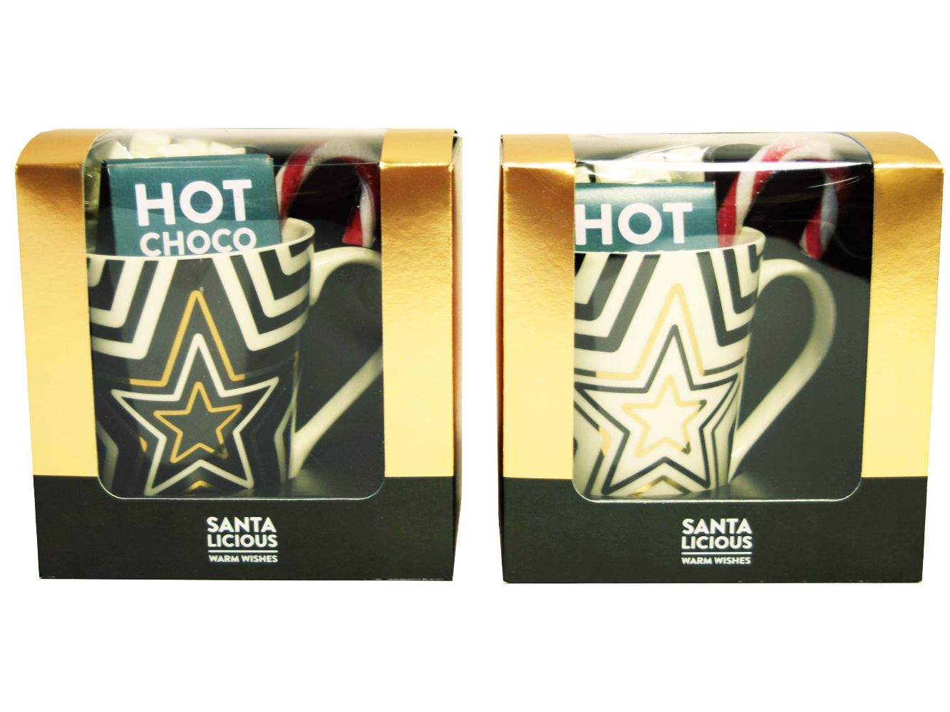 Geschenk-Set Tasse mit heißer Schokolade, Zuckerstange, Marshmallow