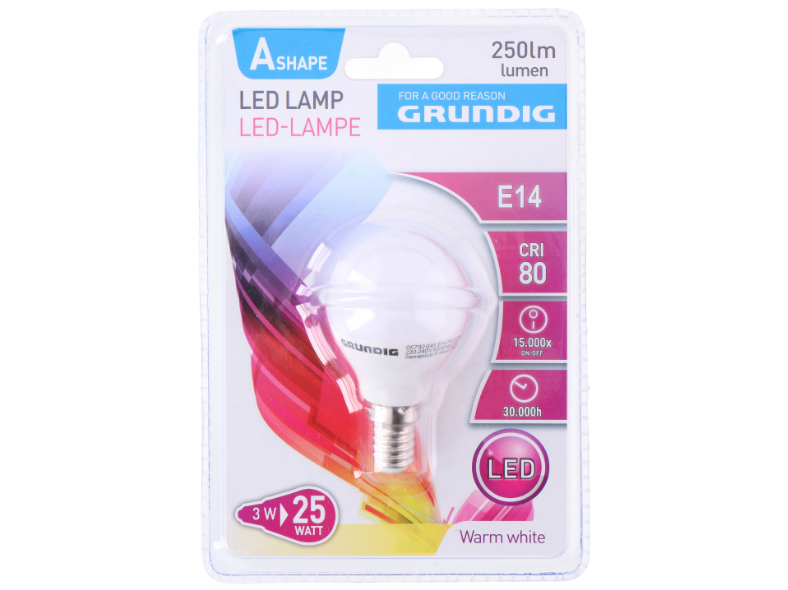 Grundig LED Lampe, LED Birne, E14 - G45, 3W