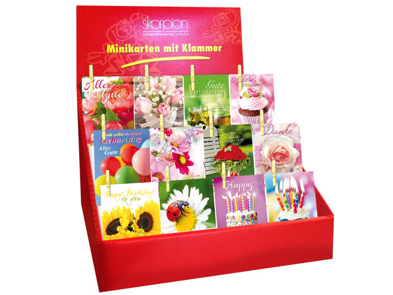 Display Minikarten mit Klammer / Klammerkarten Geburtstag & Allg. Wünsche