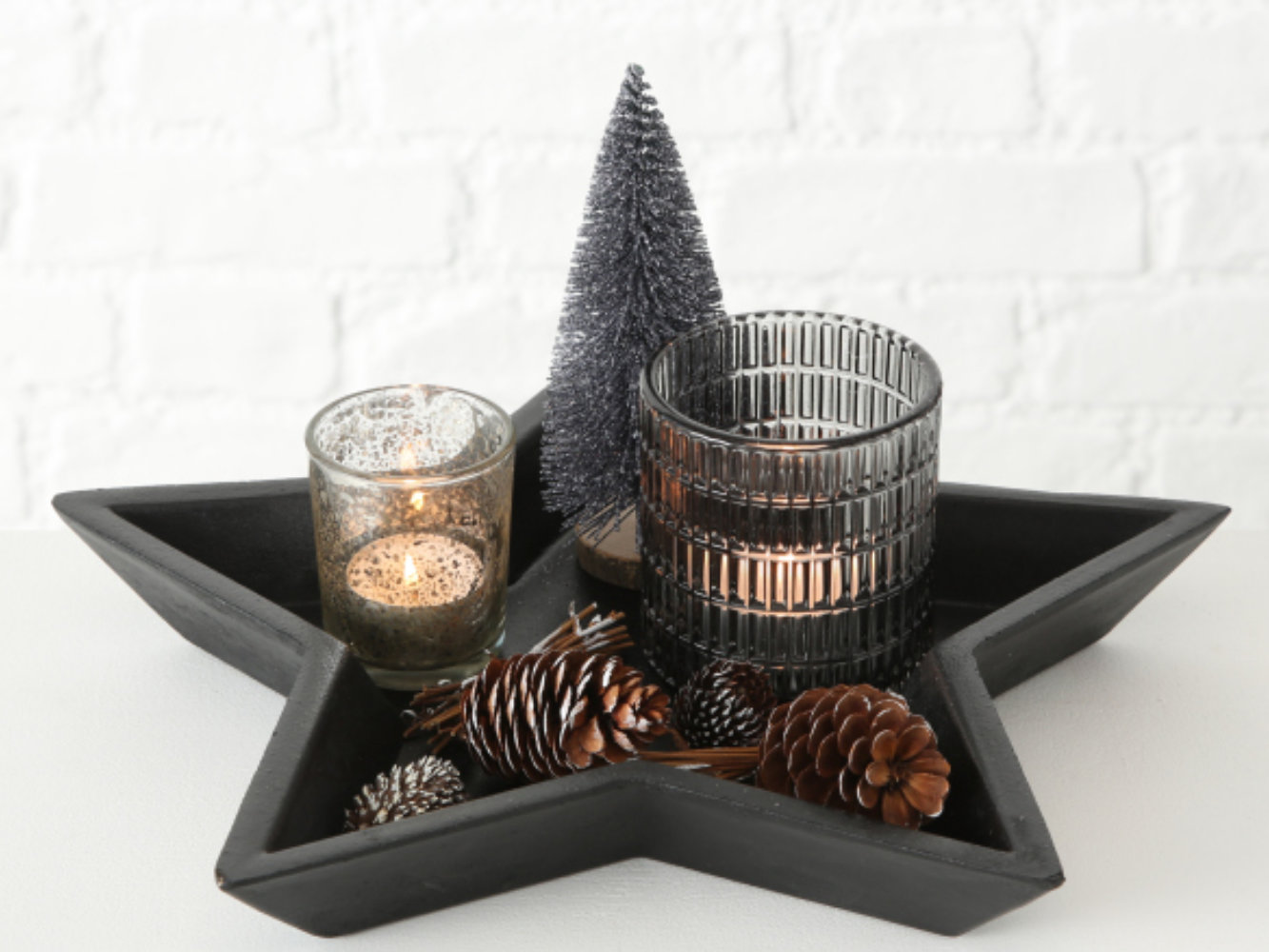 Deko Advents Teller Holz mit Teelicht und Weihnachtsdeko