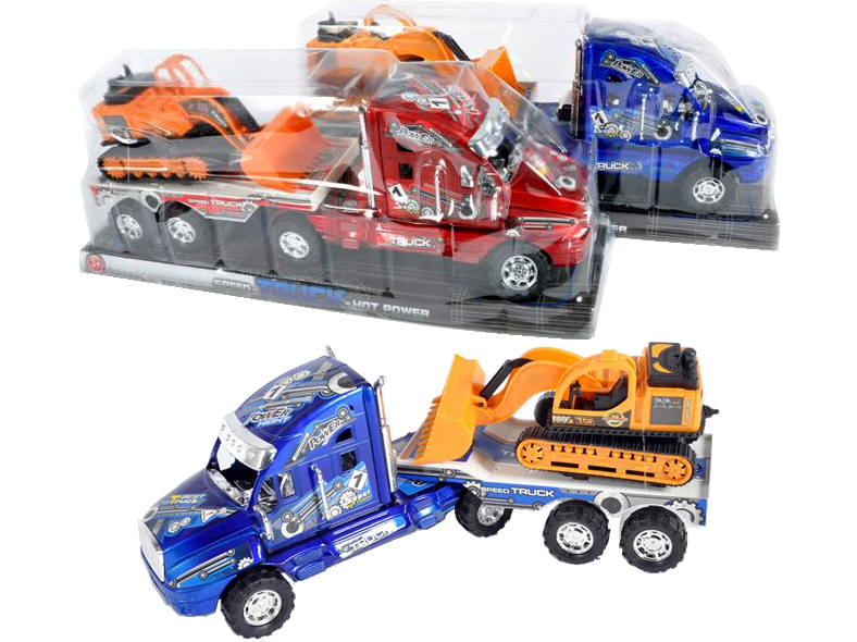 LKW mit Baufahrzeug, 3 farbig sortiert