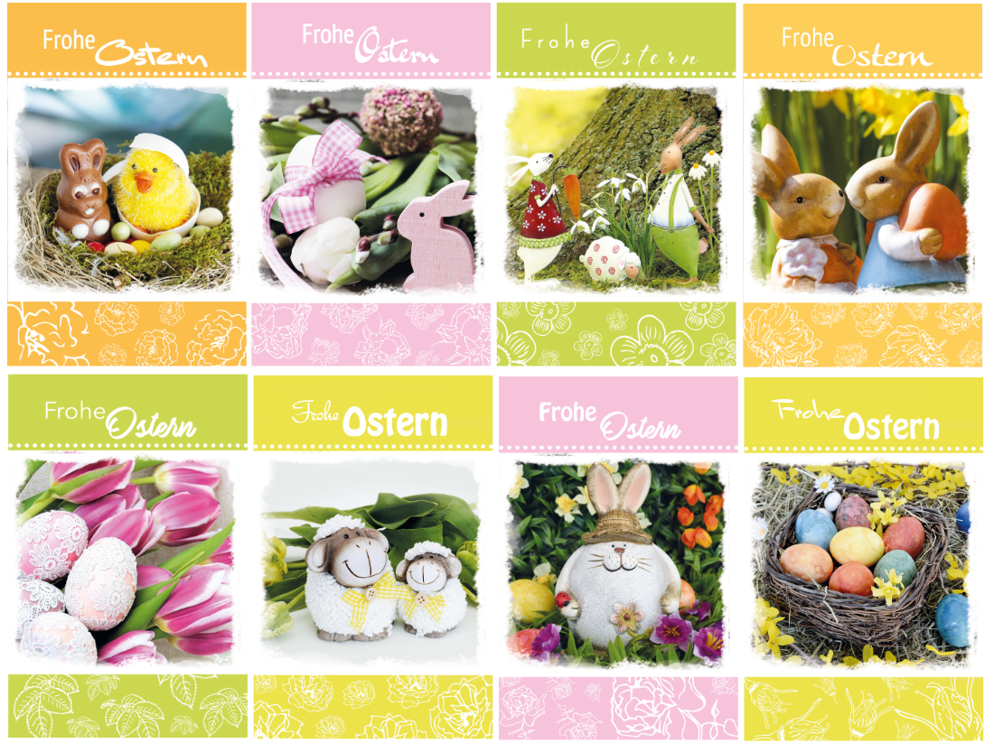 Oster-Karte in frischen Farben u. Motiven