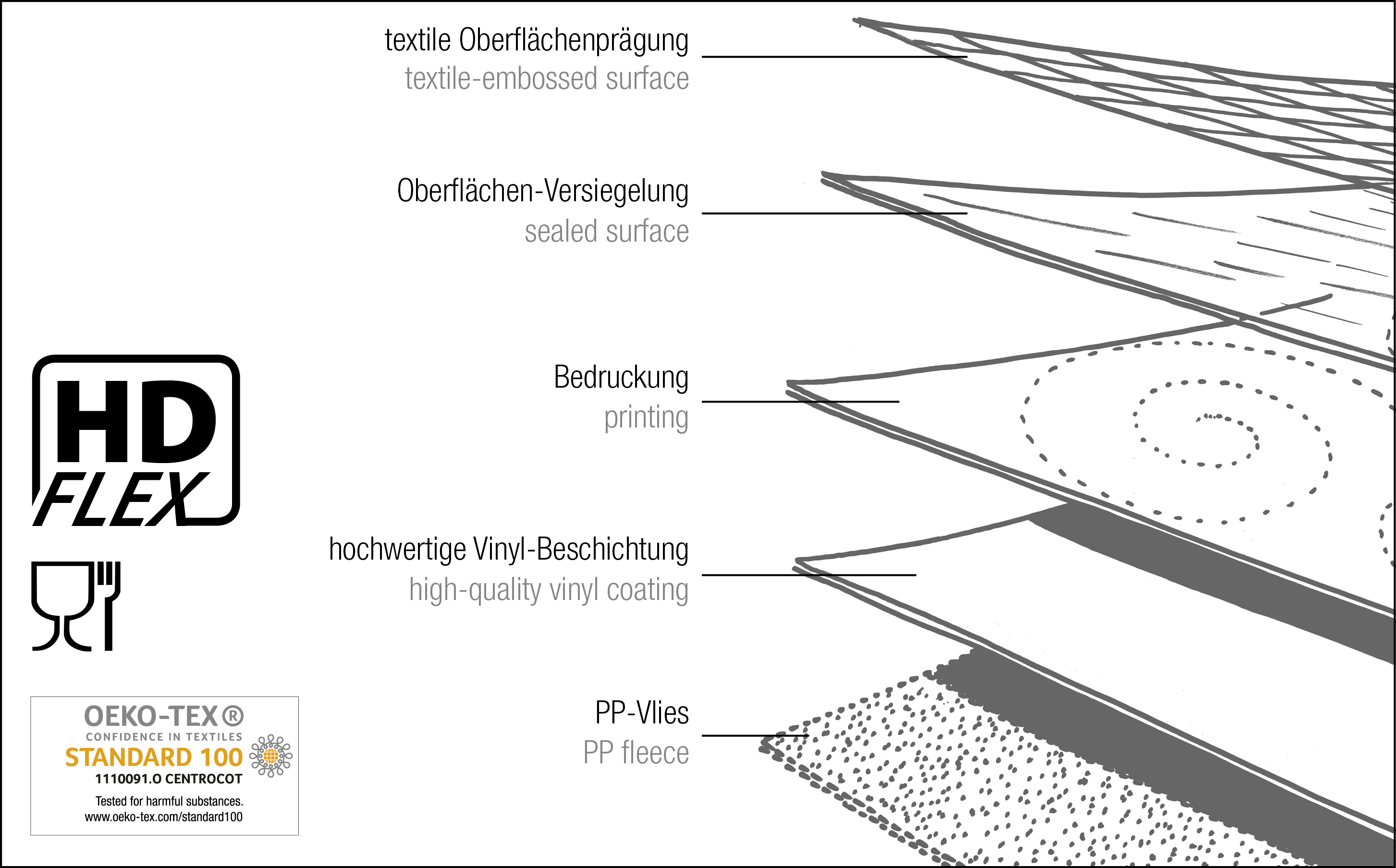 - Unsere innovative HD-flex Beschichtung ist ein spezielles 3-lagiges Beschichtungsverfahren mit hochauflösenden Mikropartikeln und zusätzlicher Oberflächenversiegelung, welche eine hohe Schmutzresistenz und Langlebigkeit gewährleistet.