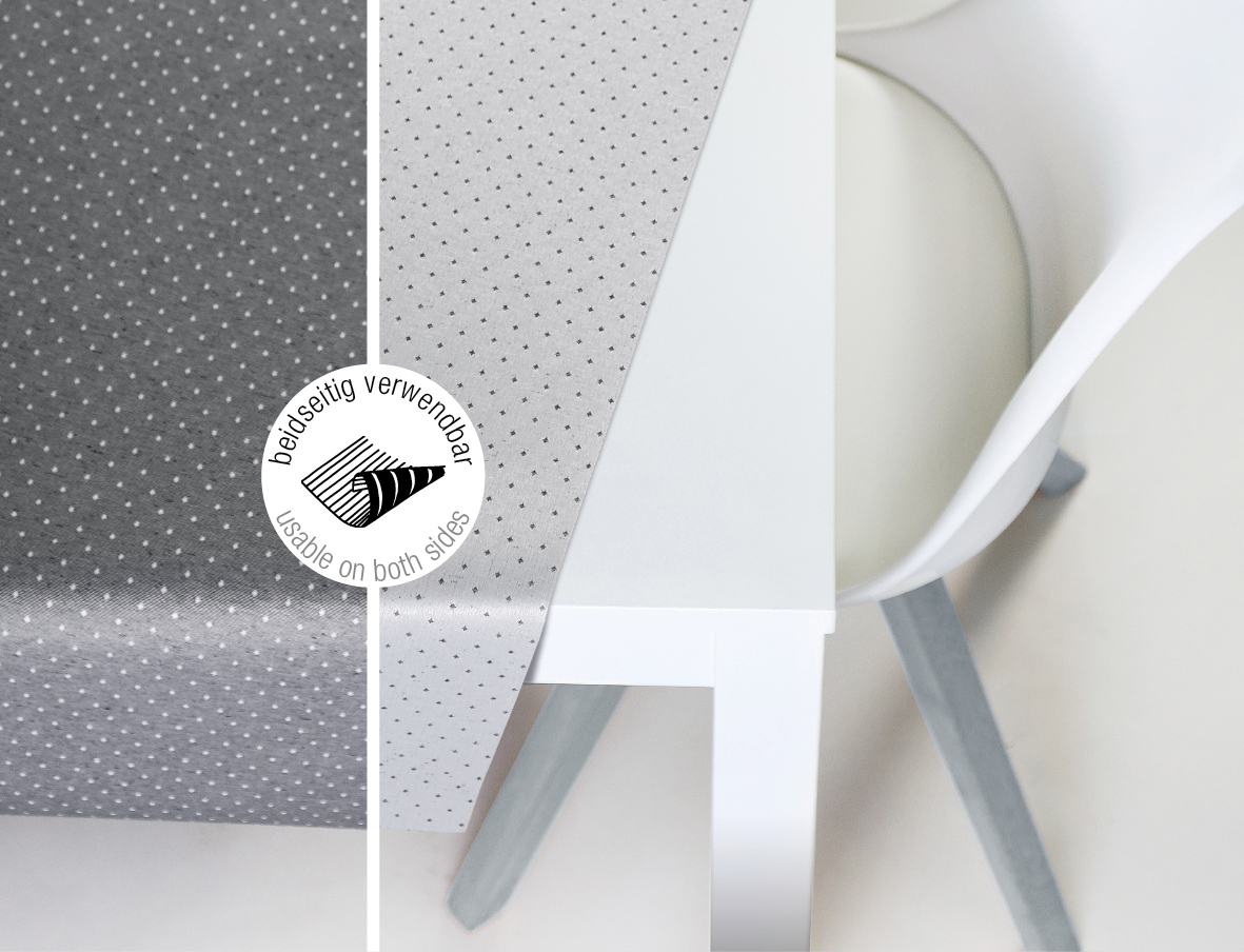 Eleganter Tischbelag aus Jacquard-Gewebe mit hochwirksamer Anti-Fleck-Ausrüstung (Lotus-Effekt) und rückseitiger Acrylat-Beschichtung. Wasserundurchlässig aber mit textilem Griff.