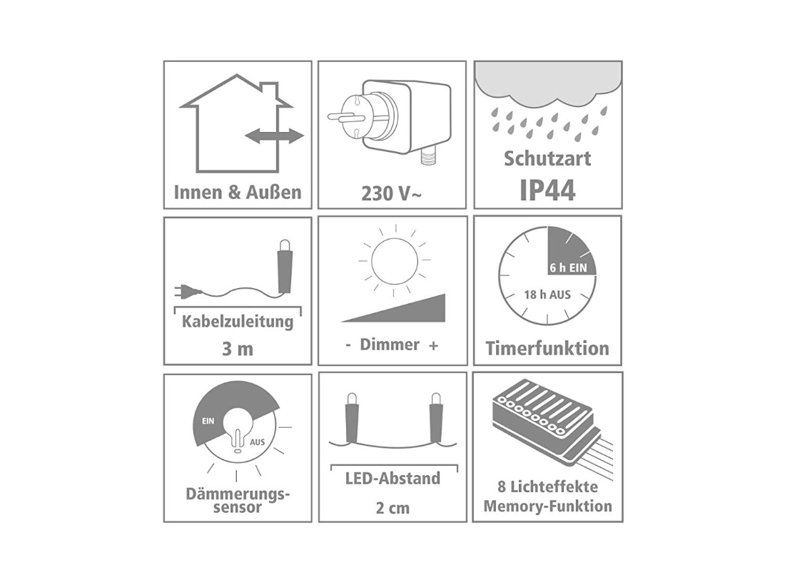8 Funktionen, Timer, Dimmer, Lichtsensor, mit Fernbedienung