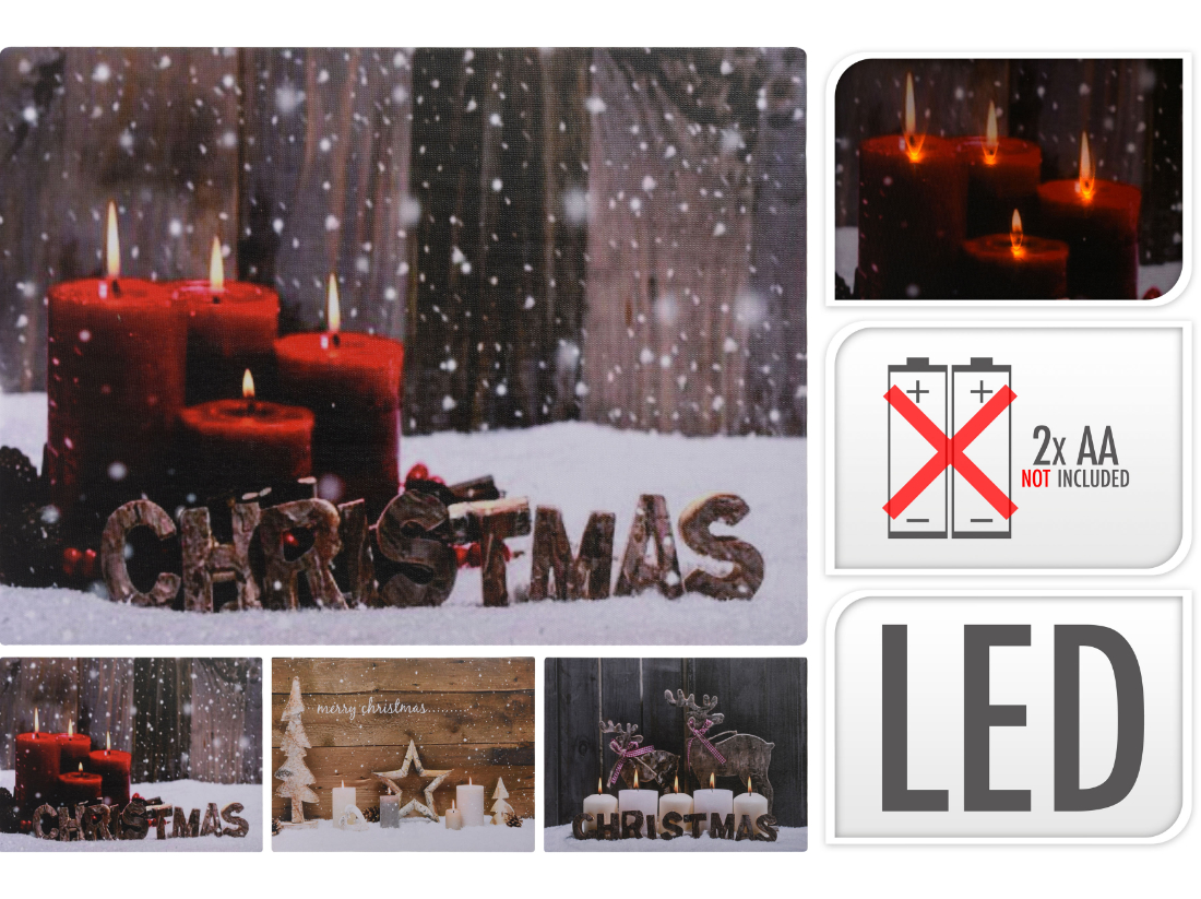 LED Bild, Leinwand Laternen Weihnachtsmotiven, 4-5 flackernde LED`s