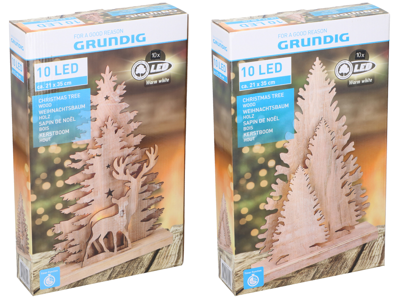 LED Deko Baum Holz, warmweißes Licht, 10 LED mit TIMER