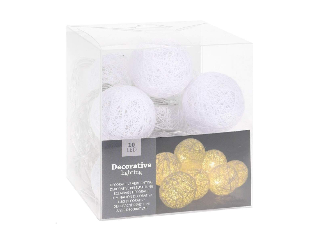LED Lichterkette 10 Raphia Kugeln 4 cm, Länge 170 cm, weiß