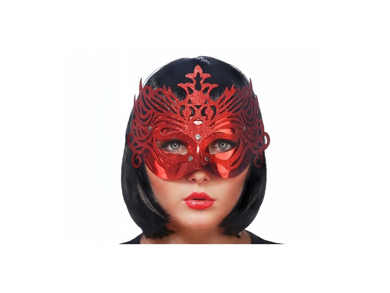 Edle Maske in Rot mit Glitzer Kunststoff Maske mit Seidenband.