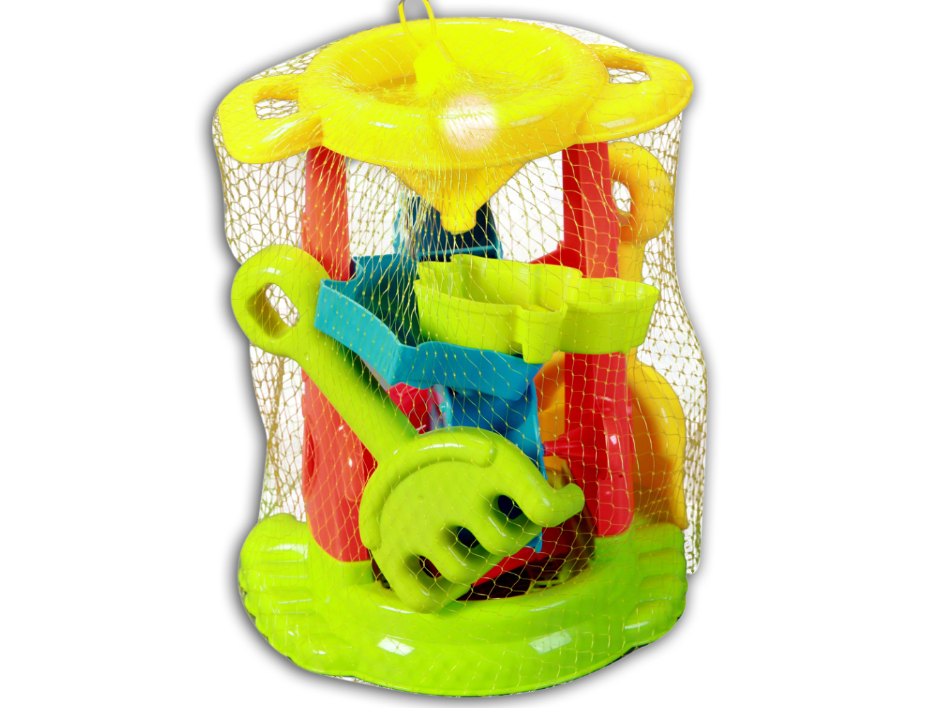 Sandspielzeug 5tlg. Schaufel, Sieb, Förmchen, Wasserrad